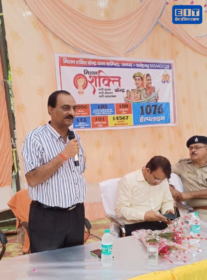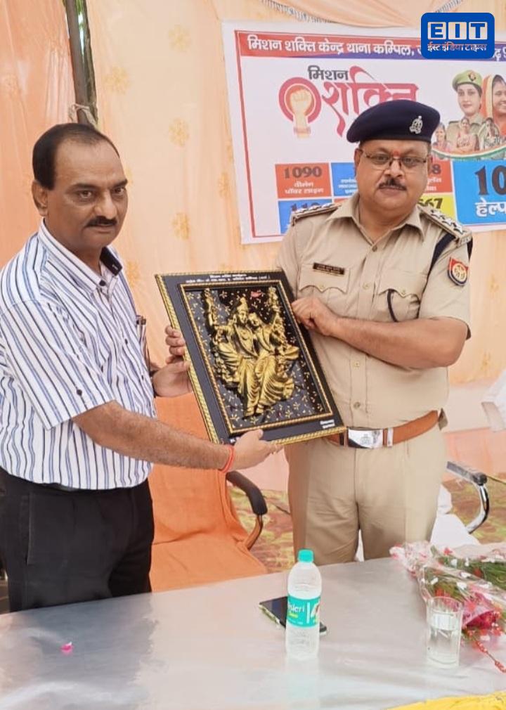 उत्तर प्रदेश पुलिस द्वारा चलाए जा रहे मिशन शक्ति नारी सुरक्षा नारी सम्मान फेज-5.0 एंटी रोमियो अभियान के तहत शनिवार को कम्पिल थाना पुलिस ने के.एस.आर इंटर कॉलेज में जागरूकता कार्यक्रम आयोजित किया । कार्यक्रम के मुख्य अतिथि एसडीएम अतुल कुमार सीओ राजेश कुमार द्विवेदी ने आपात कालीन स्थिति मे मदद के लिए हेल्पलाइन नंबर साझा किए और सरल आत्मरक्षा उपाय समझाये। और मिशन शक्ति, नारी सुरक्षा, नारी सम्मान व साइबर अपराध के प्रति जागरूक किया। वही कॉलेज के प्रवंधक डॉ विकाश शर्मा ने विचार रखे। छात्राओं ने इसे प्रेरणा दायक और उपयोगी बताया।इस दौरान छात्राओं को किसी भी प्रकार की परेशानी या आपात स्थिति में तुरंत पुलिस सहायता हेतु वीमेन पावर लाइन 1090, UP112, ऑपरेशन कवच, 181 महिला हेल्पलाइन, 1076 मुख्यमंत्री हेल्पलाइन, 1098 चाइल्ड लाइन, 155260 और 1930 साइबर क्राइम हेल्पलाइन के बारे में जानकारी दी गई।