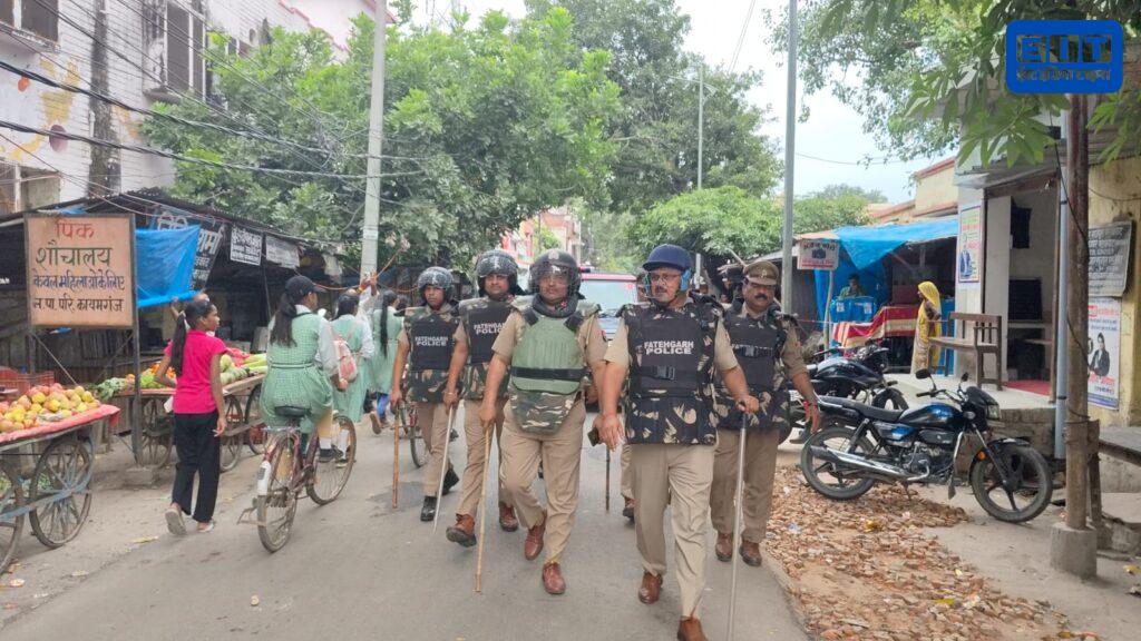 कायमगंज में शुक्रवार को बरेली में घटना को लेकर प्रशासन हाई अलर्ट पर रहा। शनिवार शाम सीओ राजेश कुमार द्विवेदी के नेतृत्व में इंस्पेक्टर अनुराग मिश्रा, इंस्पेक्टर क्राइम मोहम्मद कामिल के अलावा सभी चौकियों के प्रभारियों के साथ नगर के मुख्य मार्गो पर फ्लैग मार्च किया। सीओ राजेश कुमार द्विवेदी ने नगर वासियों से शांति व्यवस्था कायम रखने में प्रशासन का सहयोग करने और अफवाहों पर ध्यान न देने की अपील की। उन्होंने कहा कि अफवाह फैलाने वालों के खिलाफ सख्त करवाई कि जाएगी। फ्लैग मार्च पुल गालिब से शुरू होकर नगर के मुख्य मार्गों से होता हुआ कोतवाली पहुंचा। जहां सीओ ने मुस्लिम समाज के लोगों के साथ पीस कमेटी की मीटिंग कर सहयोवकी अपील की। इस दौरान हाफिज शाहनूर, प्यारे मियां, चांद मियां, जावेद अली खां, मोहम्मद नवी, मोहम्मद साजिद, जहीर, अबरार, शकील, आमिर आदि मौजूद रहे।