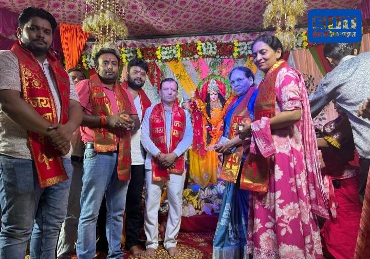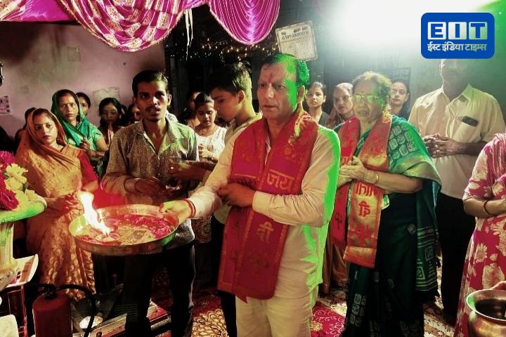 कायमगंज के लोहाई बाजार पटवन गली में मां दुर्गा की स्थापना कमेटी अध्यक्ष महेंद्र द्वारा स्थापना की गई जिसमें उत्तर प्रदेश उद्योग व्यापार संगठन जिला अध्यक्ष सुबोध गुप्ता उर्फ मंसाराम ने अपने कमेटी पदाधिकारी के साथ मां दुर्गा की पूजा अर्चना कर आरती कर माता रानी का आशीर्वाद का सौभाग्य प्राप्त किया दुर्गा कमेटी के सभी पदाधिकारी ने व्यापार संगठन के पदाधिकारी का पटका पहनकर सम्मानित किया गया आरती के पूर्व भजन कीर्तन का भी आयोजन रखा गया था माता रानी की कृपा और आशीर्वाद सभी भक्तगणों पर बना रहे इस मौके पर उत्तर प्रदेश व्यापार संगठन के जिला अध्यक्ष सुबोध गुप्ता उर्फ मंसाराम जिला उपाध्यक्ष अजय गुप्ता सर्राफा कमेटी अध्यक्ष गौरव वर्मा महामंत्री हर्षित गुप्ता दिलीप वर्मा नगर महिला महामंत्री प्रगति तिवारी सुनीता सचान जी अभिषेक महेश्वरी दुर्गा कमेटी अध्यक्ष महेंद्र चंदन सक्सेना आलोक पटवा विवेक वर्मा निशु सेठ प्रभात कश्यप आकाश कट्टर हिंदू शौर्य भारद्वाज मनोज कौशल अजय भाई ब सैकड़ो माताएं बहने सभी भक्तगढ़ उपस्थित रहे माता रानी की कृपा सदैव सभी पर बनी रहे जय माता दी।