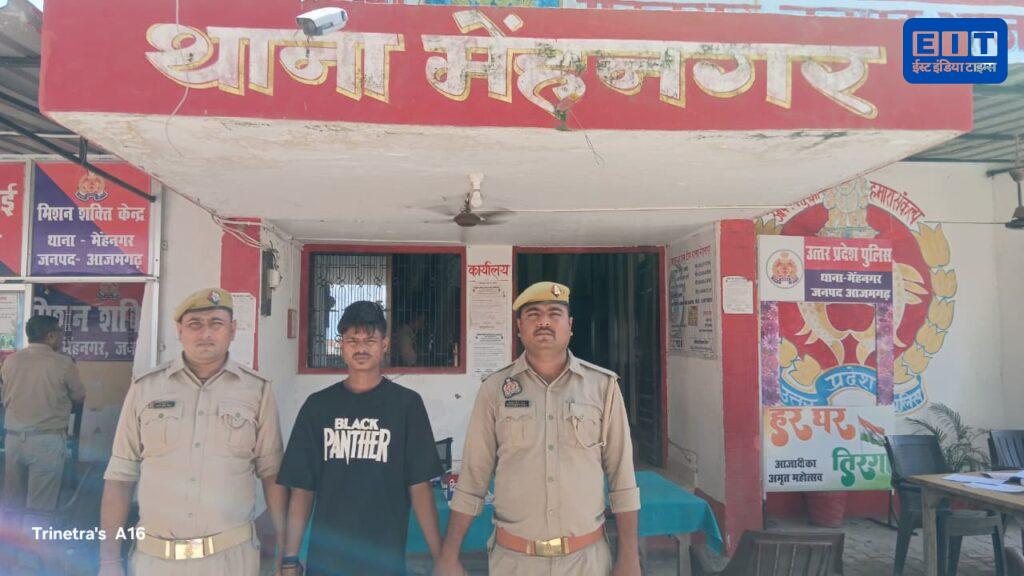 मेहनगर थाना के उ0नि0 तुषार त्रिपाठी मय हमराह उ0नि0 मो0 आलम का0 विकास यादव का0 जयकिशन के साथ थाना से रवाना होकर तलाश वांछित वारण्टी पेण्डिंग विवेचना एकामात व चेकिंग संदिग्ध व्यक्ति वाहन में मामूर था कि जरिये मुखबिर खास सूचना मिली कि एक व्यक्ति खजुरा से करनेहुआ की तरफ रोड से आ रहा था कि सूचना पर प्रस्थान कर एक व्यक्ति खजुरा की तरफ से आता दिखायी दिया मुखबिर खास दूर से इशारा करके हट बढ़ गया हम पुलिस वाले एक बारगी घेरकर उस व्यक्ति को खजुरा करनेहुआ पुलिया पर उस व्यक्ति को समय करीब 10.50 पर पक़ड़ लिये, पकड़े गये व्यक्ति से नाम पता पूछा गया तो उसने अपना नाम शिवम पुत्र गब्बर उर्फ सुजीत निवासी ग्राम रजहा अजमतपुर थाना मेंहनगर जनपद आजमगढ़ उम्र करीब 22 वर्ष बताया तलासी से उसके कमर में खुसा हुआ नाजायज तमंचा 315 बोर बरामद हुआ। उ0नि0 तुषार त्रिपाठी मय हमराह द्वारा मुखबिर की सूचना पर एक अभियुक्त शिवम पुत्र गब्बर उर्फ सुजीत निवासी ग्राम रजहा अजमतपुर थाना मेंहनगर जनपद आजमगढ़ उम्र करीब 22 वर्ष को उसके घर से समय करीब 10.50 बजे एक अदद तमंचा .315 बोर तमंचा व एक जिंदा अदद कारतूस .315 बोर के साथ गिरफ्तार किया गया। गिरफ्तारी व बरामदगी के आधार पर थाना स्थानीय पर मु0अ0सं0 444/25 धारा 3/25 आर्म्स एक्ट पंजीकृत किया गया। अन्य अग्रिम विधिक कार्यवाही प्रचलित है।
