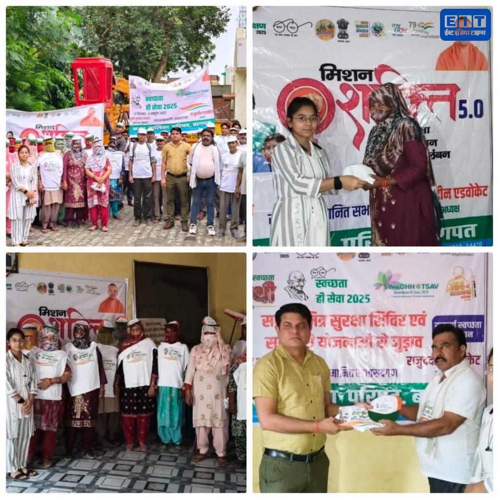 बागपत/बागपत नगर पालिका परिषद बागपत में मंगलवार को मिशन शक्ति 5.0 एवं स्वच्छता ही सेवा अभियान के अंतर्गत सफाई मित्रों का सम्मान समारोह आयोजित किया गया। इस अवसर पर नगर पालिका परिषद के अध्यक्ष राजुद्दीन एडवोकेट एवं अधिशासी अधिकारी कृष्ण कुमार भड़ाना के निर्देशानुसार कार्यक्रम का संचालन किया गया।कार्यक्रम के दौरान सफाई एवं खाद्य निरीक्षक संदीप तिवारी ने सफाई मित्रों को टी-शर्ट और टोपी पहनाकर सम्मानित किया। वहीं, कु. बुशरा मलिक ने महिला सफाई मित्रों को सम्मानित कर उनका मनोबल बढ़ाया।