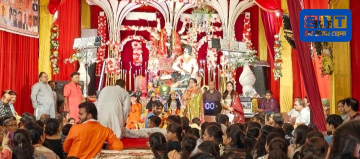 नगर के मोहल्ला बगिया मंगू लाल में दुर्गा पंडाल में नवमी के शुभ अवसर अलग-अलग कार्यक्रम का आयोजन किया गया। जिसमें गौर हरि की सुंदर झांकी, राधा कृष्ण की मनोहारी झांकियां, बाल कलाकारों द्वारा सुंदर भजनों पर नृत्य जैसे मनोहरी कार्यक्रमों का आयोजन किया गया है। कार्यक्रम की मुख्य अतिथि वरिष्ठ भाजपा नेत्री डॉक्टर मिथिलेश अग्रवाल व विशिष्ट अतिथि नगर पालिका अध्यक्ष डॉक्टर शरद गंगवार ने मां दुर्गा की भव्य प्रतिमा की महा आरती कर रंगारंग कार्यक्रमों का आनंद उठाया। इस दौरान समिति द्वारा आए हुए अतिथियों का सम्मान व अंग वस्त्र भेंट किया गया। प्रतिभागी छात्रों को आए हुए अतिथियों ने सुंदर पुरस्कार देकर सम्मानित किया। इस अवसर पर दुर्गा समिति के संरक्षक नवीन रस्तोगी, नीरज रस्तोगी, सौरभ रस्तोगी, विकास, मोहित रस्तोगी, कैलाश रस्तोगी, आर के बाजपेई, पंकज शुक्ला, एसके वाजपेई, नितिन, सचिन, शिवम सहित अनेक युवाओं ने शारदीय नवरात्रि के सभी दिन माता की पूजा अर्चना व सेवा की। इसके उपरांत समिति द्वारा विशाल भंडारा का आयोजन किया गया। जिस पर श्रद्धालुओं ने प्रसाद ग्रहण कर पूर्ण के भागीर हुए।