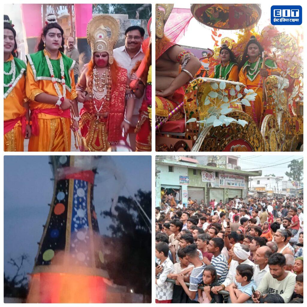 बागपत/ बडौत/बिनौली, श्री प्रेम मंडल रामलीला कमेटी के तत्वाधान में गुरुवार को विजयदशमी ( दशहेरा ) का पर्व श्रद्धा के साथ मनाया गया। इस अवसर पर बिनौली में विजयदशमी का जुलूस मनमोहक झांकियो व बैंडबाजों के साथ धूमधाम से निकाला गया। शिव मंदिर रामलीला स्थल से विजयदशमी का जुलूस शुरु हुआ। जुलूस में भगवान शिव शंकर, राम सीता हनुमान, घोड़े पर रावण, शिव तांडव नृत्य, राम व रावण की सेना सहित अनेकों झांकियो व सुप्रसिद्ध बैंड आकर्षण का केंद्र बने। जुलूस मेन बाजार, मेरठ बड़ौत मार्ग से होकर पूरे गांव का भृमण कर बस स्टैंड बिनौली पहुचा यहॉ पर राम व रावण की सेना के बीच भीषण युद्ध हुआ, जिसमें राम ने अग्नि बाण मारकर रावण का वध किया। इसके बाद मुख्य अतिथि समाज सेवी आकाश सोलंकी ने रावण के पुतले को आग के हवाले किया जिससे दशानन का पुतला धू धू कर जला उठा। विजयदशमी के जुलूस पर बिनौली में क्षेत्रवासियों की काफी भीड़ रही। जुलूस में प्रधान उपेंद्र धामा, अध्यक्ष गुलवीर धामा, देवेंद्र धामा, विनय धामा श्रीपाल धामा, रवि धामा, डॉ राहुल कश्यप, अजय शर्मा, संजीव जांगिड़, अनिल धामा, कौटिल्य धामा, रवि भाटिया, डॉ. राहुल देव, बिट्टू कश्यप, मोनू वर्मा, राजू वर्मा, अमित भाटिया,सोनू भाटिया,जितेंद्र दहिया आदि का सहयोग रहा