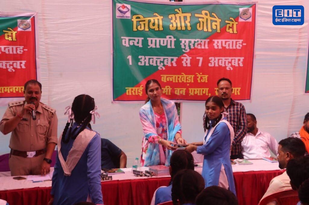 बाजपुर।वन्नाखेड़ा वन क्षेत्र अधिकारी नवल किशोर कपिल ने बताया बन्नाखेडा के वन विगभ भवन परिसर में वन्य जीव सुरक्षा सप्ताह का आयोजन किया।आयोजन की अध्यक्षता ग्राम प्रधान बरहैंनी मनप्रीत कोर तथा मुख्य अतिथि प्रभारी वन प्रभागीय वनाधिकारी के मनीष जोशी जो द्वारा भाग लिया। कार्यक्रम में बन्ना खेड़ा रेहटा उधम सिंह नगर के ग्रामीण एवं जनप्रतिनिधियों मैं मोहन सिंह प्रतिनिधि ग्राम प्रधान भीकमपुरी, नरेंद्र सिंह प्रतिनिधि ग्राम प्रधान खबरी, चंचल सिंह क्षेत्र पंचायत सदस्य बन्नाखेड़ा कुलवंत सिंह क्षेत्र पंचायत सदस्य चनकपुर, रवि बरुआ ग्राम प्रधान केला बनवारी,बबलू पाल क्षेत्र पंजाब सदस्य बरहैंनी,रोहित सेमवाल ग्राम प्रधान चनकपुर व समानसेवी नरेन्द्र नरेन्द्र शर्मा एवं राजकीय इण्टर कालेज बन्नाखेड़ा के अध्यापक सहित स्थानीय ग्रामीणों ने प्रतिभा किया। समानसेो नरेन्द्र शर्मा द्वारा बनो को बचाने के आध्वान के साथ- मृत लोगों के शवदाह हेतु विभाग से जलौनी लकड़ी अपने स्तर से वितरित करने का अनुरोध किया।