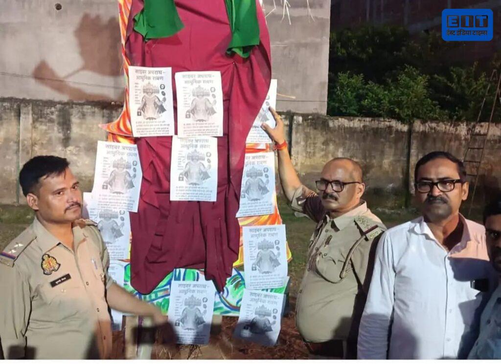 मुबारकपुर रोडवेज़ स्थित रामलीला मैदान में विजयादशमी के अवसर पर रावण के पुतले का दहन किया गया। इस दौरान रावण के पुतले के साथ साइबर अपराध के पोस्टर को भी जलाकर समाज को साइबर अपराध खत्म करने का संदेश दिया गया।