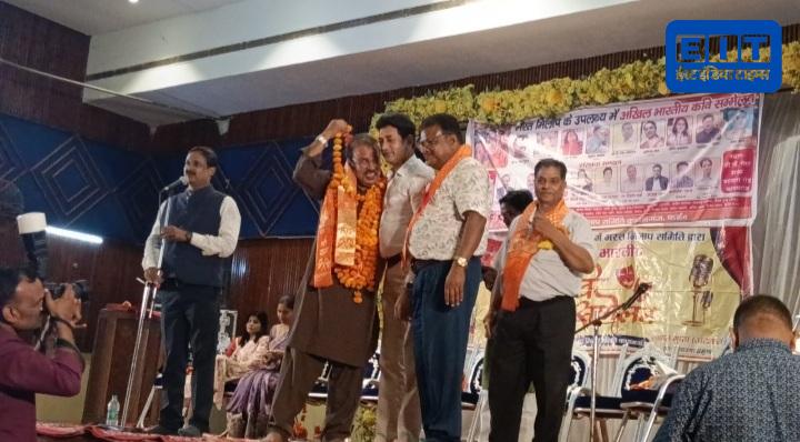 नगर के जटवारा रोड स्थित एक सभागार में शुक्रवार देर रात आयोजित विराट कवि सम्मेलन में देशभर से आए कवियों ने अपने ओज, हास्य और मार्मिक काव्य पाठ से समां बांध दिया। भगवान राम की राजगद्दी के बाद हुए इस भव्य आयोजन में कवियों ने अपनी रचनाओं से श्रोताओं को देर रात तक बांधे रखा। मुजफ्फरनगर से आई वीर रस की कवित्री प्रीति अग्रवाल ने राष्ट्रभक्ति से ओतप्रोत पंक्तियां पढ़ीं लाडले तिरंगे तेरी आन, बान, शान हेतु शीश कट जाए पर शीश न झुकाएंगे। वहीं आगरा की कवित्री भूमिका जैन ने राजनीति पर तीखा कटाक्ष करते हुए कहा जिसमें खाते उसी को छेदते हैं, जिसमें रहते उसी को भेदते हैं, जिस वतन में रहते उसी की तबाही चाहते हैं, और उसी को प्यारा वतन कहते हैं। मध्य प्रदेश के जबलपुर से आए प्रख्यात शायर सूरज सहाय सूरज ने अपनी पारिवारिक शायरी से श्रोताओं को भावविभोर कर दिया। उन्होंने कहा मां में एक अक्षर, एक बिंदी पर ब्रह्मांड झुकाया जा सकता है। उनके शेरों ने सभागार में गहरी संवेदना का माहौल बना दिया। वहीं अंतरराष्ट्रीय हास्य कवि शंभू शिखर ने अपने तीखे व्यंग्य और हास्य से दर्शकों को ठहाके लगाने पर मजबूर कर दिया। उन्होंने राजनीति और समाज पर कटाक्ष करते हुए कहा ट्रंप भारत आएं तो लालू से मिलो, वो तुम्हें बिहारी न कर दें, जनता तुम्हें भिखारी न कर दे, योगी से मिलो वो तुम्हें ट्रंप से तिवारी न कर दे। कार्यक्रम का संचालन गीतकार कुमार मनोज ने करते हुए उन्होंने अपने भावनात्मक काव्य पाठ से माहौल को संवेदनशील बना दिया सो गया नसीब, मांग का गया सिंदूर, भाई की पढ़ाई, बाप की दवाई और बेटियों की चोटियां चली गईं। आपके लिए तो एक आदमी गया हुजूर, किंतु मेरे घर की तो रोटियां चली गईं।
