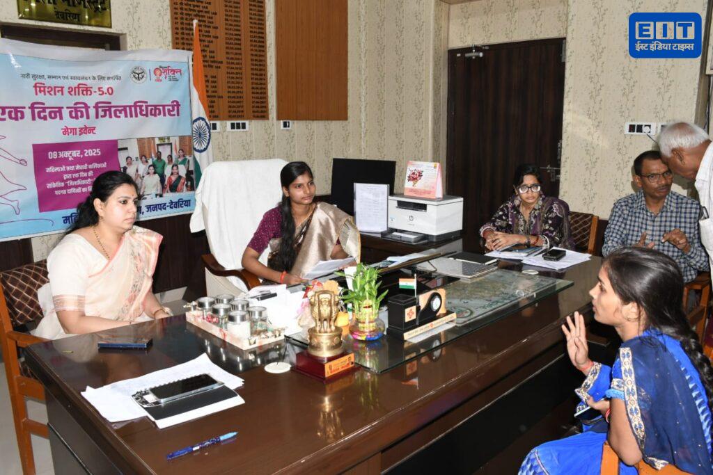 मिशन शक्ति फेज-5.0 अभियान के अंतर्गत महिला कल्याण विभाग, देवरिया द्वारा आज एक अनोखी पहल के रूप में “एक दिवस की जिलाधिकारी” कार्यक्रम का आयोजन किया गया। इस कार्यक्रम का उद्देश्य बालिकाओं में नेतृत्व क्षमता, आत्मविश्वास, निर्णय लेने की योग्यता तथा प्रशासनिक व्यवस्था के प्रति समझ को बढ़ावा देना रहा।